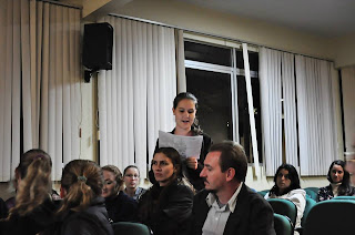 No último dia 09 aconteceu a terceira noite cultural, mas primeira em homenagem aos estudantes e aos pais, para os acadêmicos de letras. Proposta pelo coordenador do curso, Ciro Danke, e coordenado pela professora Denise e o professor Felipe Schmidt, a noite contou com duas apresentações culturais.